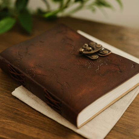 Normaler Preis £755Grundpreis /Nicht verfügbarAuf LagerLedernotizbuch Weltkarte und Nähte (7x5")