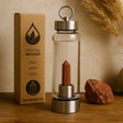 🌟 Entdecken Sie die Essenz der Vitalität mit unserer mit Kristallen angereicherten Glaswasserflasche mit dem belebenden roten Jaspis, einem Stein der Ausdauer. 🌟