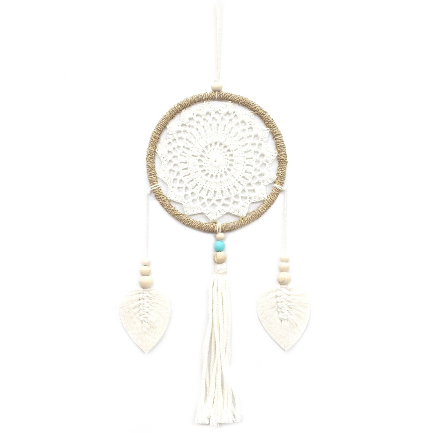 ✨ Design: Mit einem hellbraunen runden Rahmen und einem komplizierten weißen Häkelmuster im Inneren verströmt dieser Traumfänger unkonventionellen Charme. ✨