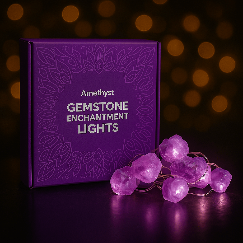 Beleuchten Sie Ihren Raum mit SHAMTAMs Edelstein-Zauberlichtern – Amethyst! ✨ Diese 227 cm langen LED-Lichterketten bestehen aus 20 Kristallsteinen, die ein warmes, einladendes Leuchten ausstrahlen und perfekt dazu geeignet sind, in jedem Innenbereich eine gemütliche Atmosphäre zu schaffen. Amethyst, bekannt für sein beruhigendes violettes Strahlen, fördert Entspannung, Intuition und inneren Frieden. Verwandeln Sie Ihr Schlafzimmer, Wohnzimmer oder Ihre Terrasse in eine ruhige Oase.