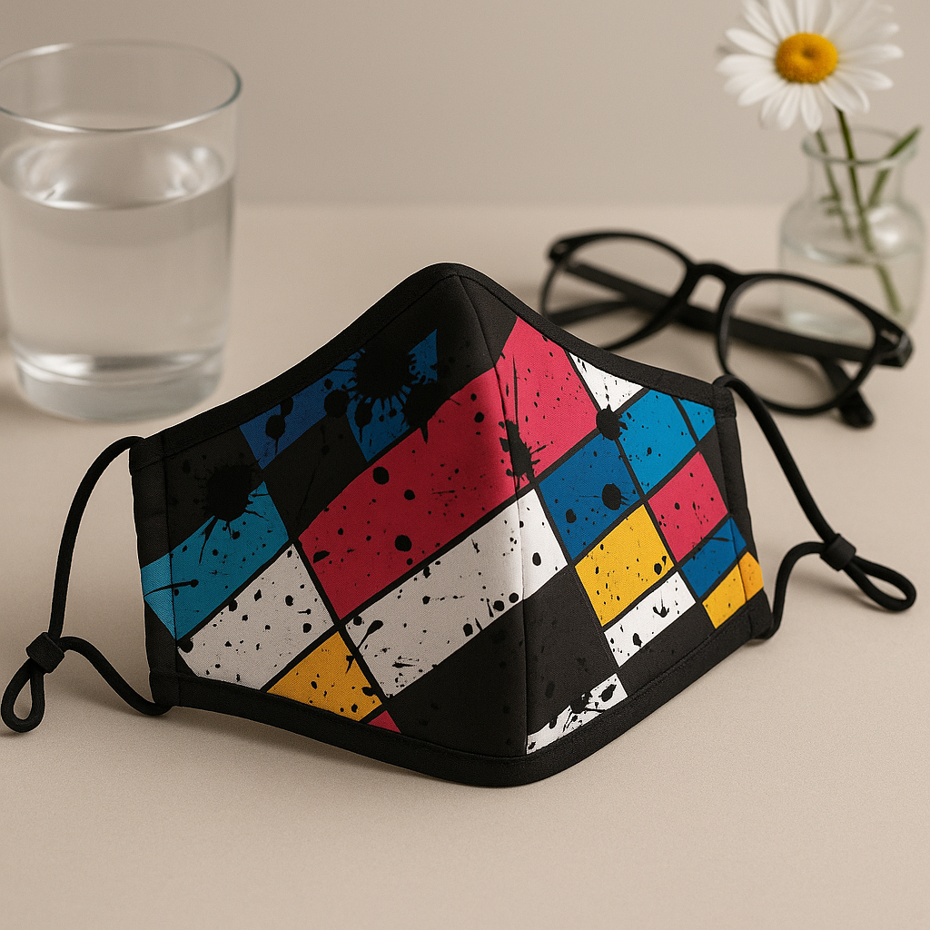 Diese Gesichtsbedeckung aus einer bequemen Mischung aus 50 % Polyester und 50 % Baumwolle ist nicht nur atmungsaktiv, sondern auch eine Leinwand für Ausdruck. Das kräftige, abstrakte Muster ist von der Graffiti-Kunst inspiriert, die seit den 1960er Jahren urbane Landschaften prägt und Freiheit und Individualität symbolisiert.