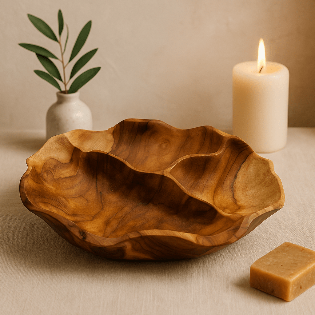 - 🌳 Organic hand-carving: A freeform shape with a wavy rim that feels calm and alive.