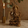 Cool to the touch and softly luminous, this miniature Laxmi rests on a lotus pedestal in antique brass tones. Fine lines trace her halo, layered jewelry, and gentle mudras, giving a compact piece a serene, steady presence. 🌸