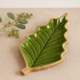 Green Enamel Leaf Mango Wood Serving Bowl 33×17cm