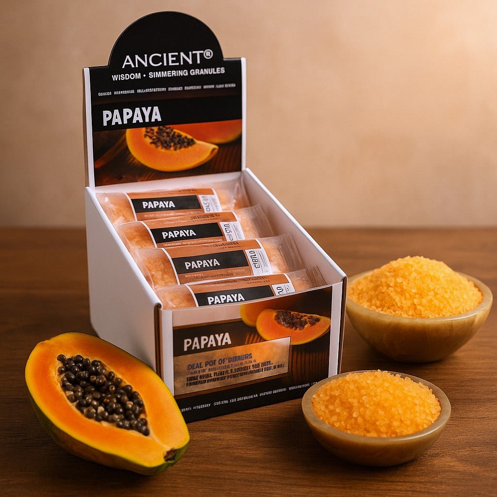 Verwandeln Sie Ihr Zuhause mit unseren Papaya-Siedegranulaten in ein tropisches Paradies! 🌴 Diese leuchtend orangefarbenen Granulate sind perfekt für Duftlampen und verströmen einen herrlichen Papayaduft, der an die üppigen, exotischen Landschaften der Tropen erinnert. 🌺