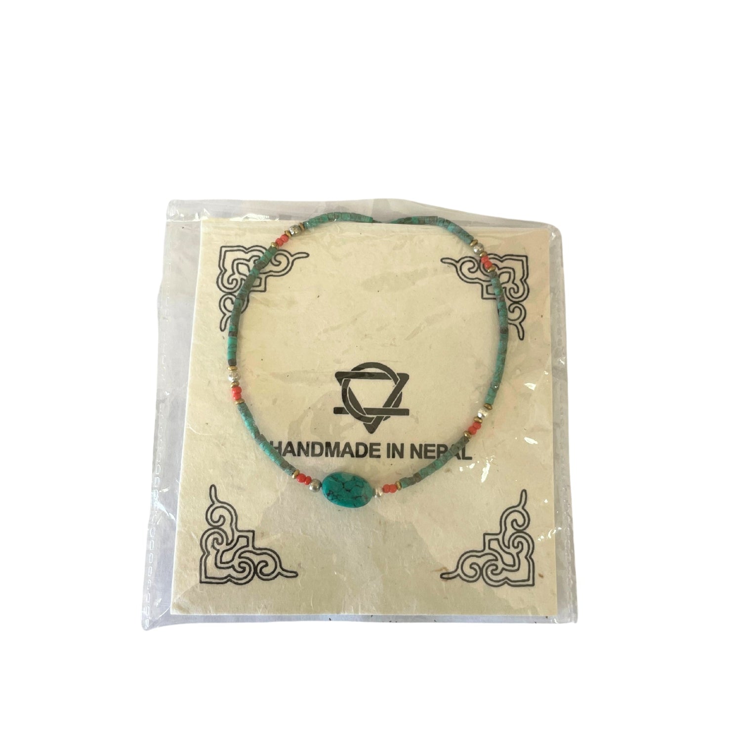 Handgefertigte nepalesische Halskette aus Türkis und Edelsteinen – eleganter Perlenschmuck mit kulturellem Flair