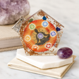 Entdecken Sie die Magie des Orgonite Power Pendant - Pentagon Chakra aus Indien. Dieser einzigartige Anhänger mit den Maßen 4 x 4 x 0,5 cm und einem Gewicht von 10 g ist aus klarem Harz gefertigt und mit bunten Steinen, Kristallen und Metallflocken besetzt. 🌟