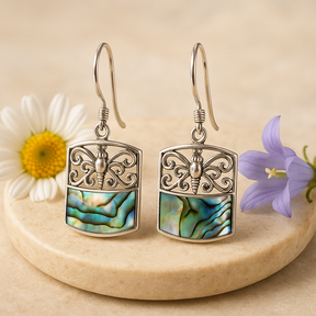 Ohrringe aus Abalone-Muschel, Libellenmotiv, Silber, Paar