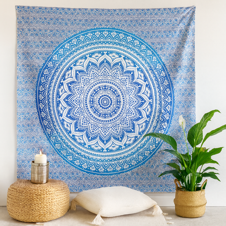 Μπλε Μαντάλα Υφαντό Μπόχο Κρεμαστό Τοίχου Κουβέρτα Κρεβατιού
