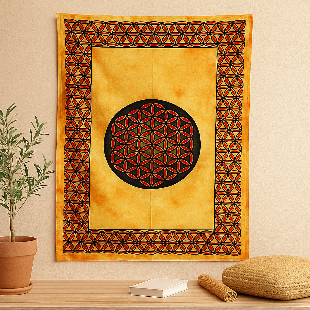 Μονό Βαμβακερό Κουβερλί Τοίχου Κρεμαστό Λουλούδι της Ζωής Πορτοκαλί