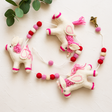 Γιρλάντα Μονόκερου από Τσόχα για Κρέμασμα στον Τοίχο Ροζ Κεντημένες Λεπτομέρειες