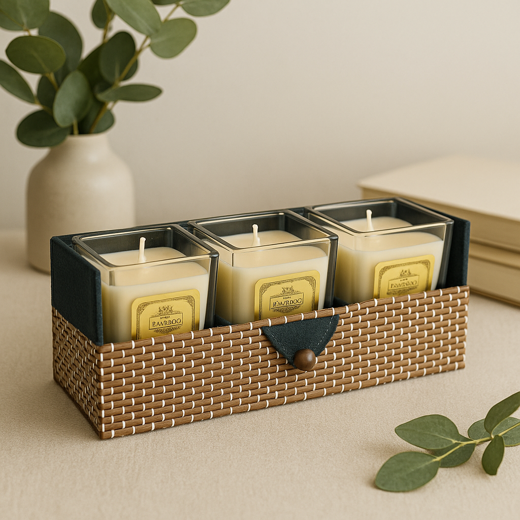 Κουτί Κεριών από Μπαμπού για 3 Κεριά