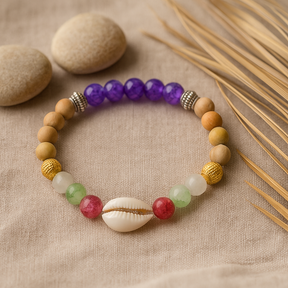 🐚 Δροσερό κοχύλι, ζεστό ξύλο, μια απαλή λάμψη χρυσού και ασημιού. Αυτό το βραχιόλι είναι μια φορετή υπενθύμιση του Tri Hita Karana — των μπαλινέζικων «τριών αιτιών ευεξίας». Φέρει το πνεύμα της αρμονίας που ευθυγραμμίζει το σώμα, το πνεύμα και την κοινότητα με τον φυσικό κόσμο.