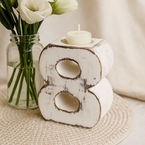 Οι αριθμοί κρατούν ιστορίες — γενέθλια, αριθμοί σπιτιών, ημερομηνίες — και μπορούν επίσης να αντανακλούν προσωπικό νόημα. Ο αριθμός 8, με τους δύο ρέοντες βρόχους του, προκαλεί ρυθμό, ισορροπία και συνέχεια· όταν γυριστεί πλάγια, θυμίζει το σύμβολο του άπειρου. Αφήστε το ξύλινο σχήμα να αγκυρώσει αυτή την πρόθεση, δίνοντας στην ενέργεια του αριθμού ένα σταθερό, απτικό σπίτι στον χώρο σας.