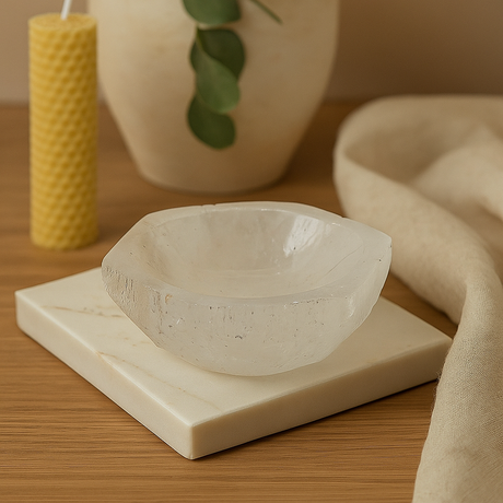 • Amatista: Un cristal poderoso para estimular y equilibrar el Chakra Corona • Selenita: Energiza y despierta todo el sistema de chakras • Cuarzo transparente: Aporta nueva energía al cuerpo • Howlita: Te guía hacia tu verdadero destino • Ágata blanca: Invita al equilibrio y la liberación