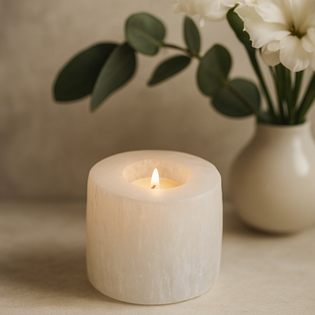 Precio normal £2068Precio unitario /AgotadoDisponiblesCandelabro de selenita, cilindro de 8 cm