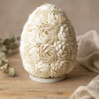 Cada pequeña concha estriada se coloca en una roseta floral apretada, creando una superficie blanquecina con una textura suave al tacto y un detalle precioso a la vista. Al encenderse, las capas de conchas difunden la luz creando una luz ambiental serena, suficiente para crear un ambiente tranquilo sin sobrecargarlo. La forma de 20 cm se asienta firmemente sobre una base lisa y ligera, ofreciendo un punto focal sereno en una mesa auxiliar, una consola de entrada o un centro de mesa de comedor.