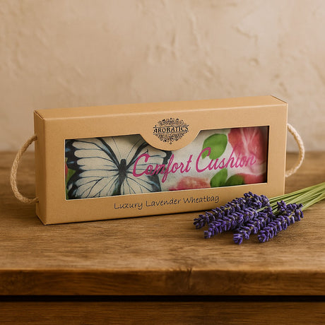 Precio normal £380Precio unitario /AgotadoDisponiblesCaja de regalo con almohada para ojos de lavanda, mariposas y rosas