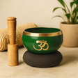 El primer toque de la madera sobre el metal libera un tono claro y relajante, y la superficie verde intenso del cuenco capta la luz. Este set completo es un compañero holístico para la sanación con sonido, la meditación, los rituales y los momentos de quietud y presencia. 🔔🌿
