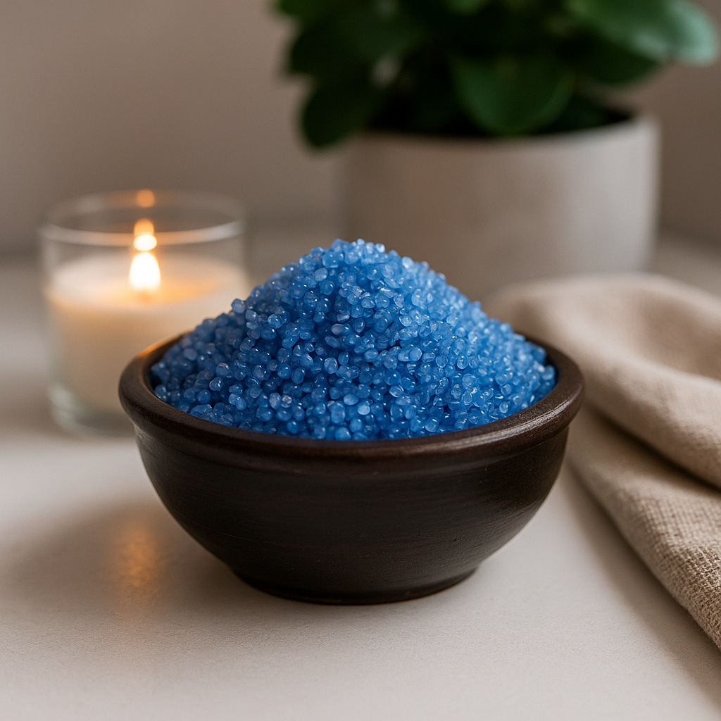 Hienot, merensinisen sävyiset rakeet vangitsevat valon kuin pienet lasikivet, sitten pehmenevät lempeäksi, tasaiseksi tuoksuksi lämmetessään. Rauhallinen tapa muuttaa käytävä tai hiljainen nurkka, ne vapauttavat tuoksun sulavasti, tuoden harmonian ilmapiirin arjen tiloihisi. 🌿