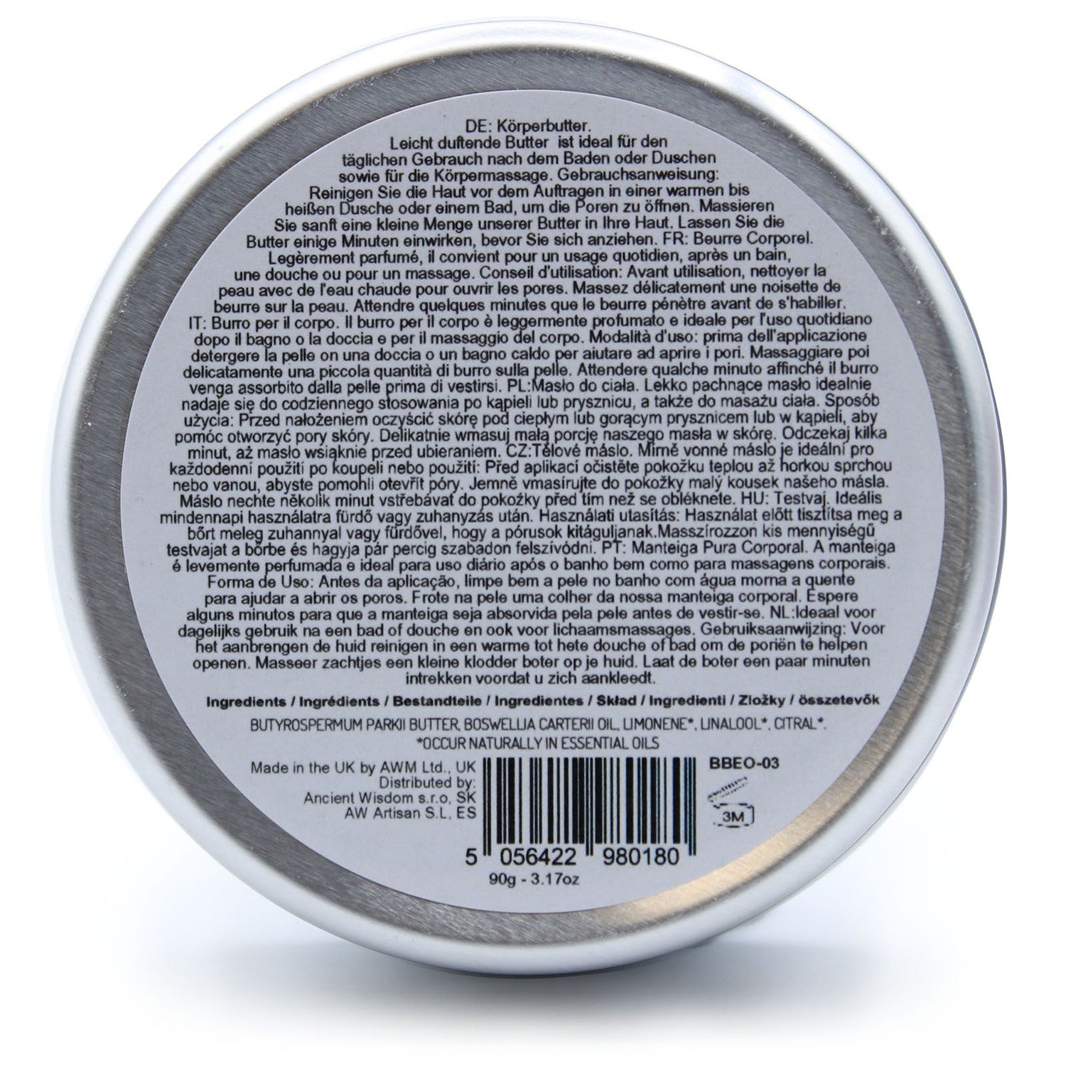 Riche et crémeux, ce baume nourrissant apporte une hydratation profonde et un confort apaisant aux soins quotidiens de la peau. Fabriqué avec du beurre de karité naturellement riche en vitamines et en acides gras, il adoucit et nourrit, tandis qu'un soupçon d'encens apporte un calme chaud et résineux. De ANCIENT® WISDOM – BAIN ET CORPS : votre soin aromathérapie vegan. 🌿