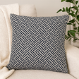 Le tissu est en coton de haute qualité avec un tissage texturé et visible — tactile au toucher avec une sensation naturelle et ancrée. Un motif répétitif de bandes diagonales entrelacées crée un effet subtil de treillis, saisissant mais calme dans un contraste bicolore. La forme carrée a des coins légèrement arrondis, et les coutures nettes sans passepoil gardent un profil propre et moderne.