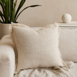 Le toucher est frais et doucement texturé, avec une frange délicate qui apporte un mouvement discret au bord. Dans un ton beige clair apaisant, ce coussin carré ajoute chaleur et personnalité à un canapé, un fauteuil de lecture ou superposé sur le lit — facile à assortir avec des neutres et des bois naturels. 🌾