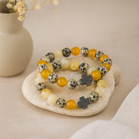 Prix régulier £1538Prix unitaire /IndisponibleEn stockBracelets pour couple lot de 2 Jaspe dalmatien Agate jaune