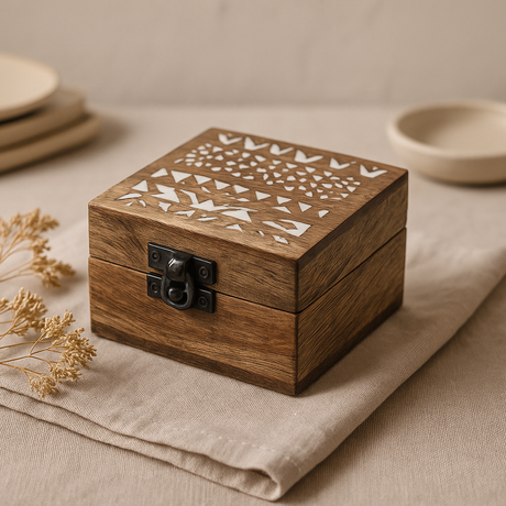 • Boîtes en bois artisanales : motifs finement sculptés issus de diverses cultures • Boîtes en mosaïque : motifs vibrants inspirés de l'art du Moyen-Orient • Boîtes en métal peint : options de rangement colorées inspirées de l'art populaire • Boîtes recouvertes de tissu : rangement doux avec imprimés textiles traditionnels