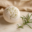 Votre bain commence avec une sphère lisse, finie à la main — mate au toucher, légèrement granuleuse avec du sel rose de l'Himalaya pâle et de minuscules éclats d'herbes vertes. Petite en taille, ferme en intention : un rituel tranquille pour la clarté et le soin. 🌿
