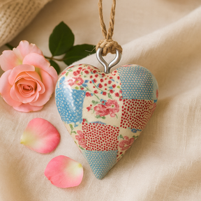 À travers de nombreuses traditions, les carillons éoliens sont accueillis pour inviter la bonne fortune, dissiper les humeurs lourdes et illuminer les seuils—des sons simples qui adoucissent la journée sans faire de promesses. Un cœur en bois lisse et peint à la main sert de capteur de vent, son patchwork brillant de bleu et rouge avec de petits points et des touches florales apportant chaleur et couleur. Le motif du cœur, chéri dans le monde entier, évoque la gentillesse et la connexion ; ici, il pend comme un doux rappel à accueillir chaque instant avec un esprit ouvert. De fines cloches en métal répondent avec un ton clair et léger—lumineux mais calme—tandis qu'une corde naturelle en jute tient fermement aux portes, fenêtres, jardins ou dans un coin tranquille pour la pratique. Écouter devient une petite méditation : l'air bouge, les notes arrivent, et l'esprit se calme.