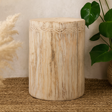 Prix régulier £7633Prix unitaire /IndisponibleStock faibleTabouret ou Table Tribale Albasia Blanchie