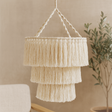 Quand le soir tombe et que l'interrupteur s'enclenche, la lumière glisse à travers les étages doux et tissés à la main, dessinant des motifs délicats sur les murs et le plafond. La frange bouge doucement avec la pièce, et la lueur devient chaude, calme et magnifiquement diffusée. ✨