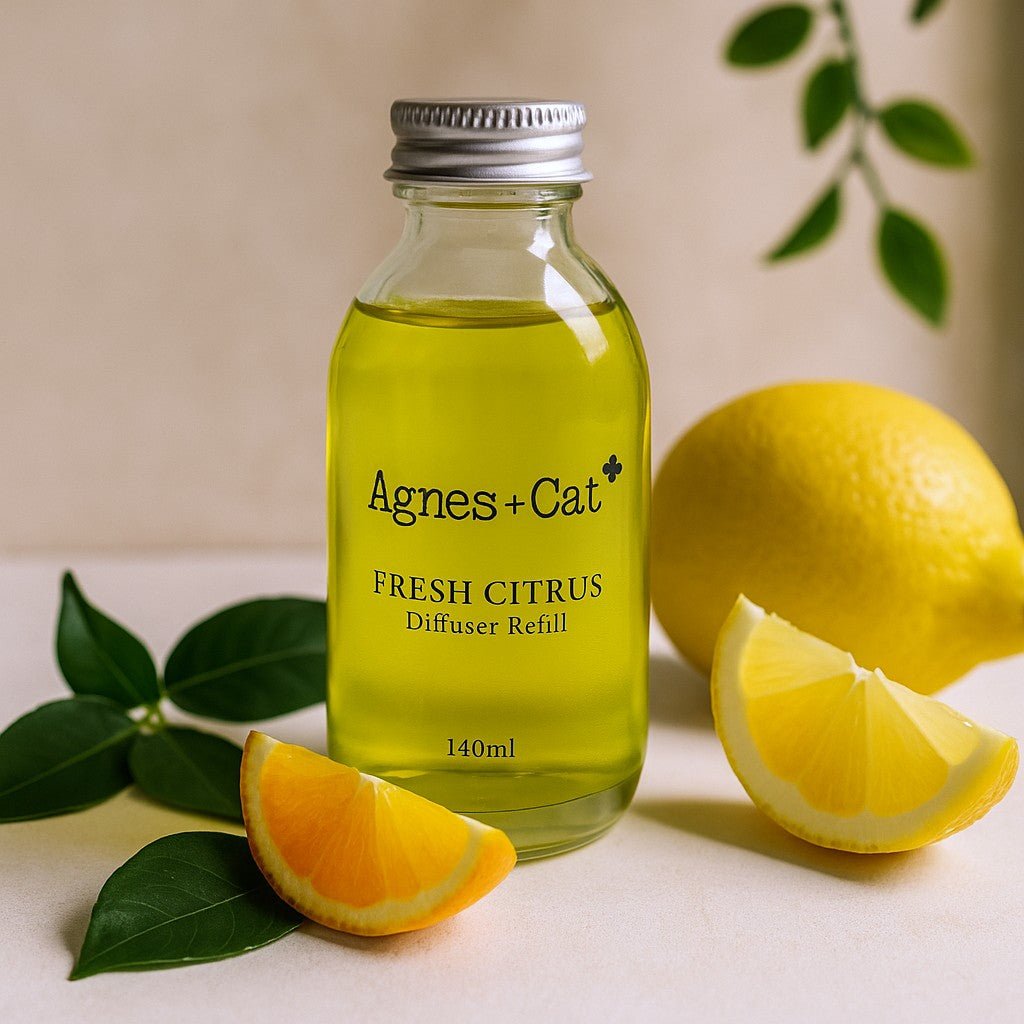 Nježni ritual difuzera s trskama oživljava prostor prisutnošću. Nekoliko prirodnih trski, svježa citrusna mješavina i tiho strpljenje — zajedno stvaraju meku, kontinuiranu atmosferu koja je čista, jasna i ugodna. 🍋