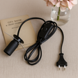Ugradnja uključuje cilindrični crni držač lampe s okruglim montažnim prstenom pričvršćenim s dva vidljiva vijka, plus dva suprotna opružna kraka koji čvrsto sjede unutar šupljine lampe. Inline crni prekidač tipa rocker nalazi se duž izoliranog kabela, a oblikovani dvopolni utikač s okruglim metalnim pinovima zaokružuje set. Funkcionalno, minimalno i nenametljivo.