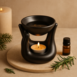Glatki, mat crni i tiho skulpturalni, ovaj difuzer ulja okuplja toplinu, miris i mekano svjetlo svijeće u jednostavan dnevni ritual. Plitka zdjela iznad poziva nekoliko kapi vašeg omiljenog eteričnog ulja; nježni sjaj ispod čini prostor smirenim i prizemljenim. 🕯️🌿