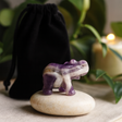 Hladni, polirani kamen lako leži u dlanu, njegove ljubičaste nijanse produbljuju se tamo gdje svjetlost susreće nježnu prozirnost. Slon poprima oblik u zaobljenim konturama—tih, postojan i ljubazan u prisutnosti. U mnogim kulturama, slon je poštovan kao simbol mudrosti, nježne snage i sreće, često se drži kod kuće ili na stolu kao svjesni podsjetnik. Ametist, dugo cijenjen zbog svoje ljubičaste boje, tradicionalno je povezan s jasnoćom i smirenim razmišljanjem. 💜