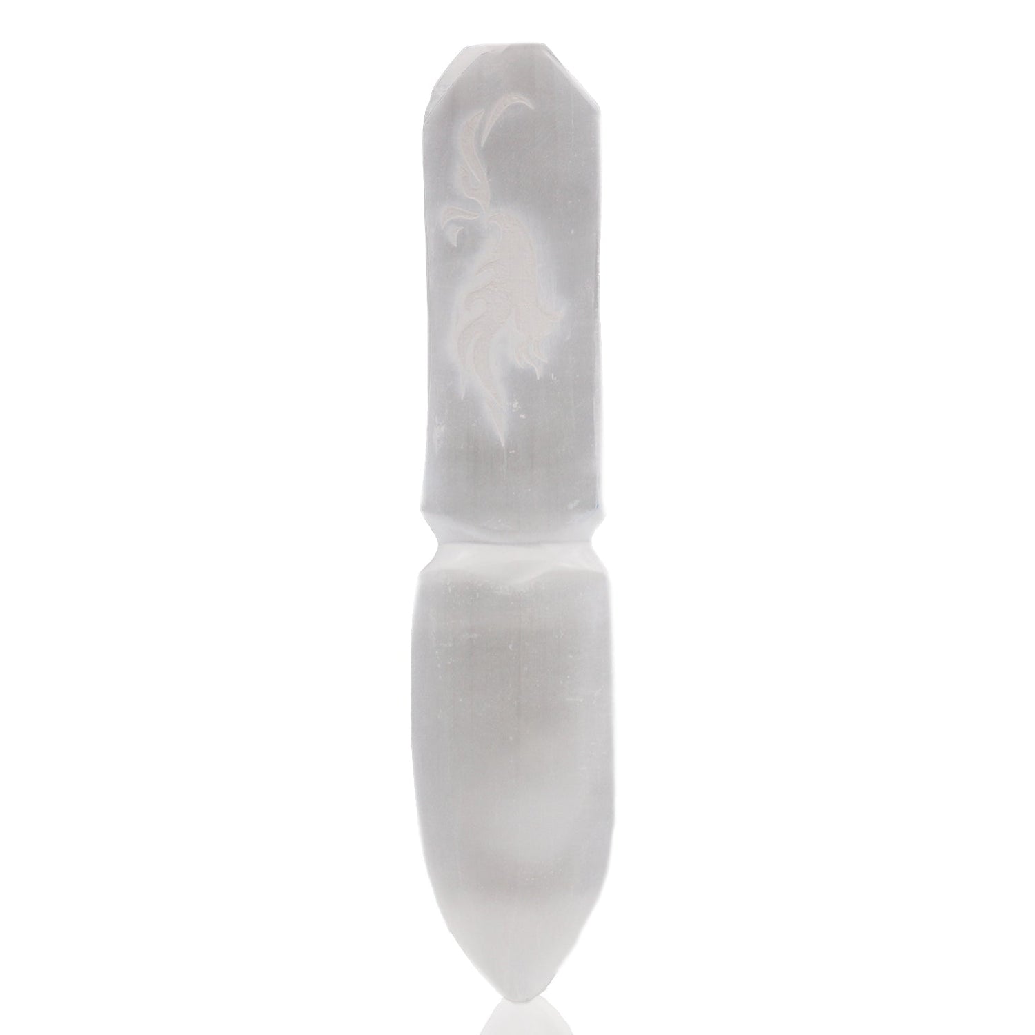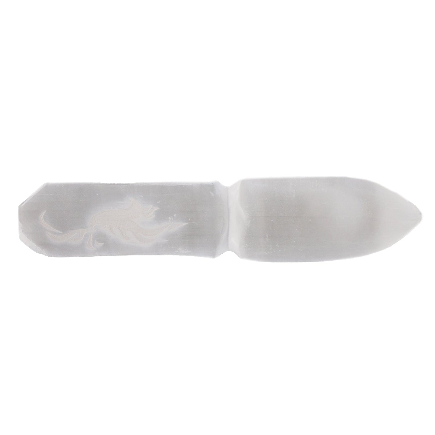 Koristi se u ritualu kao simbolični instrument za usmjeravanje energije, označavanje granica i fokusiranje uma. Držite ga u sredini, povucite liniju za otvaranje ili zatvaranje svetog prostora ili napravite namjerni "rez" u zraku da otpustite ono što više ne pripada. Selenit—nazvan po mjesecu—dugo je povezan s jasnoćom i nježnim osvjetljenjem; mnogi ga drže blizu prostora za meditaciju kao podsjetnik na mirnu pažnju i obnovu.