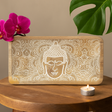 Izrezbaren od punog drveta s finim, opipljivim završetkom, pravokutni profil sjedi nisko i uravnoteženo. Blago zaobljeni kutovi i suptilni rub čine ga ugodnim za nošenje; promišljene proporcije (30 × 15 × 2,5 cm) nude velikodušnu pozornicu bez gužve u vašem prostoru. Bijeli dizajn smješten je unutar plitkih urezanih linija, dodajući nježnu teksturu na toplom smeđem godu.