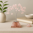 Minden fa kézzel csavart Indiában, körülbelül 80 rózsakvarc darabból áll a lombkorona. A kövek enyhén áttetszőek, rózsaszínes tónusokat és természetes változatosságot mutatnak. A drót törzs kiterjed az alapra, a gyökerek pedig a felületen szétterülnek, földelt megjelenést kölcsönözve. Az alap egy tiszta öntött piramis rózsaszínű zárványokkal és egy réz spirál díszítéssel.