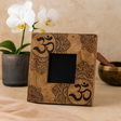 Világosbarna mangófa matt felülettel készült, az arc mély, sötét vonalakkal van gravírozva: virágos mandala motívumok a széleken és két finom ॐ dísz a sarkokban. Sok indiai hagyományban a mandala az egyensúlyt és teljességet szimbolizálja, egy olyan rendmintát, amely folyamatos figyelemre hív. A szent Om (ॐ) szótag az egységhez és a nyugodt tudatossághoz kapcsolódik, gyakran otthonokban tartják, hogy finoman emlékeztessen a megállásra. Egy fekete belső panel emeli ki a képet, miközben a látható erezet és a kézzel végzett finom részletek minden darabot egyedi jellemmel ruháznak fel. A négyzet alakú külső keret (kb. 20×20×2 cm) egy 10×15 cm-es portréképet tart, és a kihajtható állvány egyszerűvé teszi az asztali kiállítást a nappalikban — rusztikus, boho vagy letisztult, modern stílusban egyaránt.
