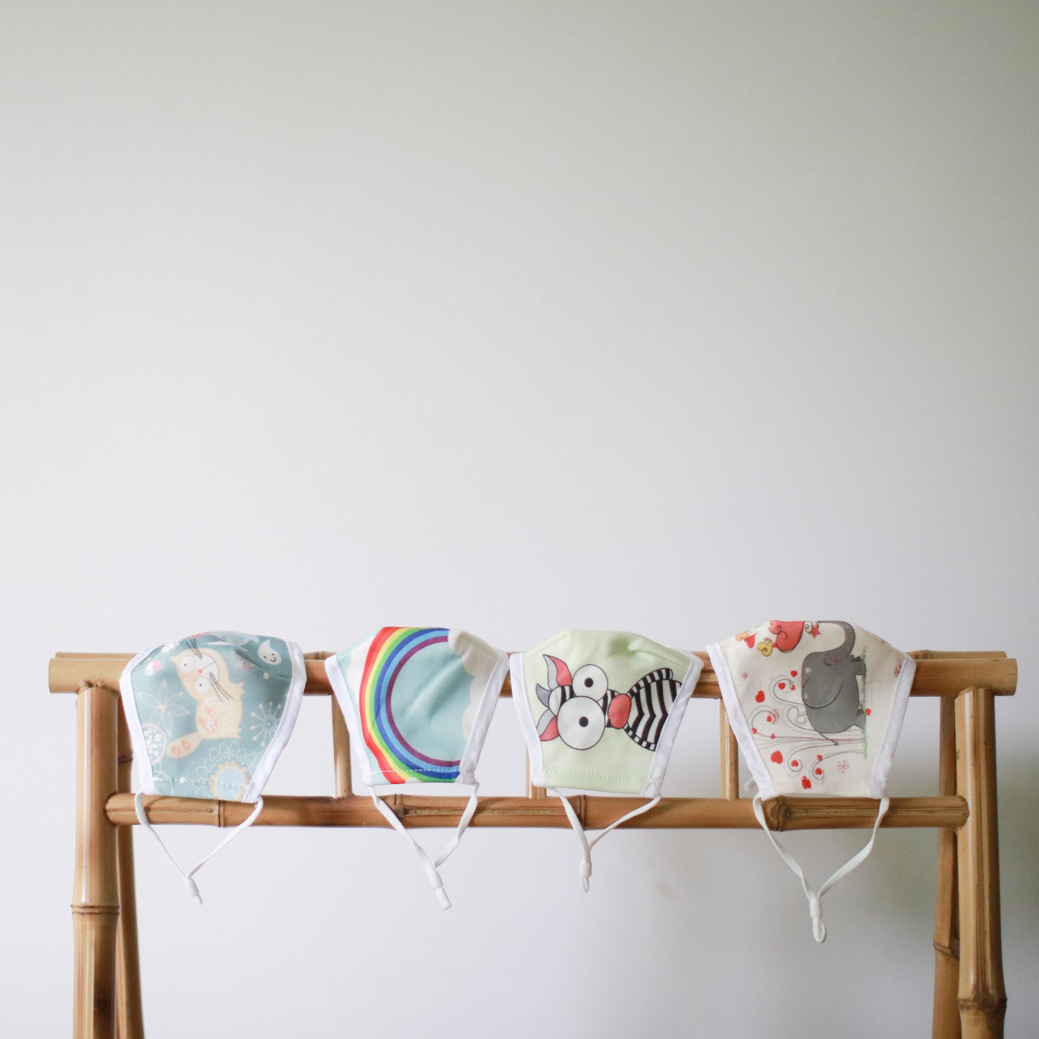 Puha poli-pamut találkozik játékos grafikával: egy kíváncsi zebra oldalról kukucskál fekete-fehér éles kontrasztban, nyugodt halványzöld formák előtt. Ez a gyerek méretű arcmaszk élénk, grafikus jegyet visz a mindennapi ruhákba, egy kis örömet hozva az öltözködésbe. 🦓