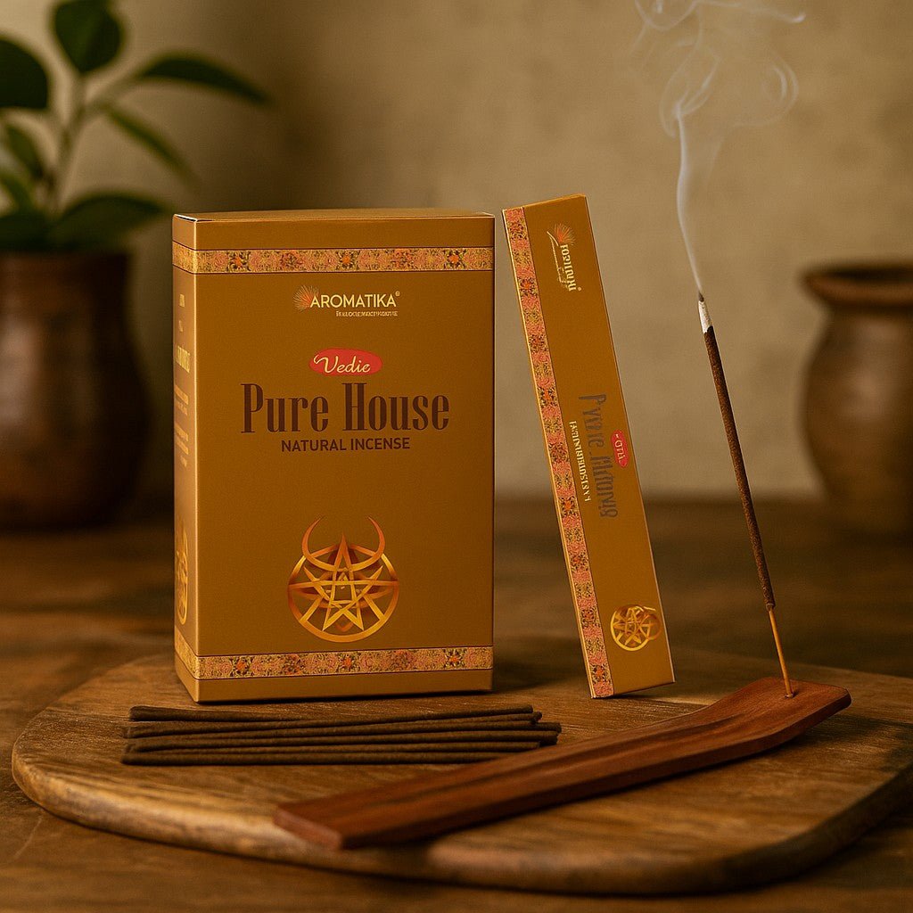 A Pure House kiegyensúlyozott, masala-stílusú keveréket kínál: légies, gyógynövényes frissesség a nyitásban, egy meleg fűszeres szív sima gyantán, és egy hosszan tartó, lágyan édes faalap. A hangulat nyugodt és hívogató — texturált, földelt és kényelmesen telt anélkül, hogy nehéz lenne. Jaipurban, az AROMATIKA által kézzel sodorva, egy hosszú indiai hagyományt tükröz, amely az illatos füstölők használatát a gondoskodás, vendégszeretet és napi rituálék megjelölésére alkalmazza. Ebben a kontextusban a "Védikus" a Védák örökségére utal — korai szanszkrit szövegekre, amelyek rituáléi és tanulmányai sok háztartási gyakorlatot formáltak Indiában, ahol gyakran gyújtanak füstölőt a fókuszált, tiszteletteljes légkör megteremtésére. Egyszerűen, hagyományos papírdobozban, csendes arany-vörös díszítéssel bemutatva. 🌿