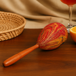 Latin-Amerikában a maracasok egyszerre tartják a ritmust népzenei együttesekben és tánczene bandákban – hallhatók sonban, salsában, cumbiában és ünnepeken, ahol a ritmus összegyűjti az embereket. A kialakításuk egyszerű és barátságos: egy gyöngyökkel töltött kamra és egy egyenes nyél, amit bárki játszhat. Ez a kézzel készített darab az egyszerűségre épít, kényelmes fa fogantyúval, matt-szatén, barázdált fejjel, és élénk piros–narancs–sárga márványozással, finom fekete részletekkel. Körülbelül 21 cm hosszú, könnyen elfér a kézben, és éles hangsúlyokat vagy egyenletes rázást ad hozzá otthoni összejövetelekhez, jam sessionökhöz és baráti, laza zenéléshez. 🥁