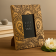 Természetes, világos-közepes fa tónusban készült, a téglalap alakú keret sima tapintású, sötét, bonyolult mintával szegélyezett, amely mandalaszerű és paisley görbéket tartalmaz. Egy kis Buddha motívum található a jobb alsó sarokban — tiszteletteljes utalás a Buddhához gyakran kapcsolódó értékekre: együttérzés, tudatosság és belső béke. Sok ember tart ilyen képeket nappaliban vagy meditációs térben, hogy finom emlékeztetőként szolgáljanak a jelenlétre. A portré nyílás 10 × 15 cm-es képekhez illeszkedik, tiszta, egyenes élekkel. Könnyen áll egy polcon vagy íróasztalon hátsó támasztékkal, így az emlékek szemmagasságban vannak anélkül, hogy zsúfolnák a szobát. A minta lágyan keretezi a képet, jól illik minimalista, modern vagy eklektikus belső terekhez, és egyszerű helyőrző nyomattal érkezik, készen a kiállításra. 🕊️