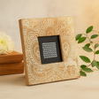 A négyzet alakú sziluett (20 × 20 × 2 cm) egy 10 × 15 cm-es nyomatot tart egy bőséges kerettel, amely hagyja lélegezni a képet. A világos természetes fa egy bonyolult, fehér felületmintával párosul, amely mandala és henna motívumokból merít ihletet, paisley és pöttyös részletekkel, amelyek inkább finomak, mint zsúfoltak. Egy finom Buddha profil nyugszik a mintában, csendes jelenlétet sugallva. Sok kultúrában a Buddha az együttérzést, a tudatosságot és a belső békét szimbolizálja; polcon vagy íróasztalon tartva a motívum egyszerű emlékeztetőként szolgálhat, hogy megálljunk és visszatérjünk a pillanathoz. Tiszta élek és állvány-stílusú hátlap teszi könnyűvé az asztali kiállítást, zökkenőmentesen illeszkedve a minimalista, bohém vagy természetes meleg belső terekhez. 🌿🕊️