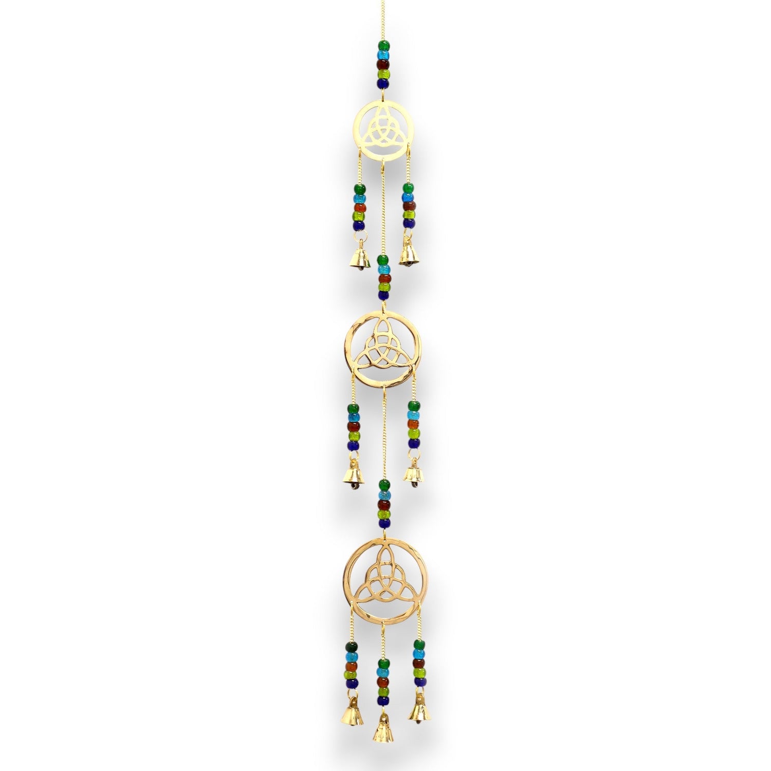 Sok otthonban és kertben a szélcsengők szerencsehozóként vannak üdvözölve, tompítva a sarkokat és elűzve a pangó energiát, miközben tisztaságot hívnak. Itt a világos, mégis megnyugtató réz hangok mértéktartó dallamot hoznak—eleinte élesek, majd lágy csillogásba olvadnak, amely megnyugtatja a teret. Az egyes kör alakú keretekben összefonódó triquetra, egy klasszikus kelta csomó, széles körben ismert az egység és folytonosság szimbólumaként. Gyakran tartják csendes emlékeztetőként az élet összekapcsolódó ciklusairól, természetesen illeszkedve ajtókhoz, teraszokhoz vagy meditációs sarkokhoz. A hallgatás egyszerű gyakorlattá válik: lélegzet, hang, szünet. 🌿