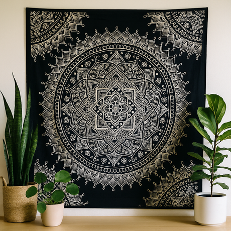 Prezzo regolare £32865Prezzo unitario /Non disponibileScorte molto basseCopriletto Doppio in Cotone Tappeto da Parete - Loto Bianco Nero
