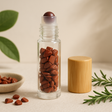 🌿 Un flacone roll-on in vetro trasparente che trasmette calma al tatto e precisione sulla pelle. Il rullo in diaspro rosso levigato scivola con facilità, mentre un tappo in legno naturale aggiunge un tocco discreto e caldo.