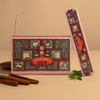 Tradizionalmente arrotolato a mano in India nello stile masala, questo incenso porta con sé il rituale quotidiano di pausa e presenza—adatto a lavoro tranquillo, conversazione o una serata calma. Il mosaico ornato in stile vintage sulla scatola di cartone, con i suoi piccoli pannelli illustrati e lo striscione rosso con la scritta “MAGIC MONK — SUPER HIT,” richiama il design classico degli incensi indiani. 🌿